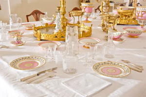 Die sorgfältig erhaltenen Serviceteile aus der Manufaktur Sèvres, filigrane Porzellanfiguren, reich bestickte Tafelwäsche und glänzendes Silberbesteck spiegeln die opulente Pracht vergangener Zeiten wider. Besucher können sich in die Welt einer fürstlichen Hofgesellschaft versetzen, in der jedes Detail – von der Menüfolge bis zur kunstvollen Tischdekoration – Teil eines raffinierten gesellschaftlichen Rituals war.